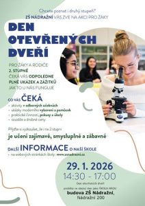Ve čtvrtek 29. 1. 2026 od 14:30 do 17:00 se na obou budovách ZŠ Nádražní uskuteční Den otevřených dveří.