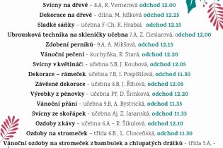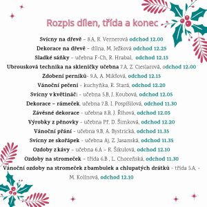 Rozpis dílen a odchodů na obědy v pátek 21.11.2025