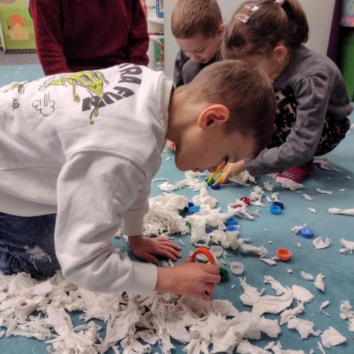 Děti z 0.A v pátek navštívily knihovnu, kde na ně čekal Koblížek se zábavným programem
